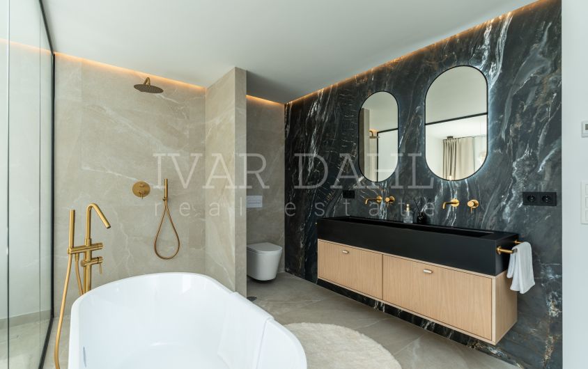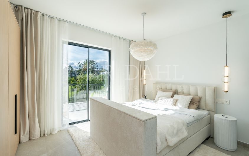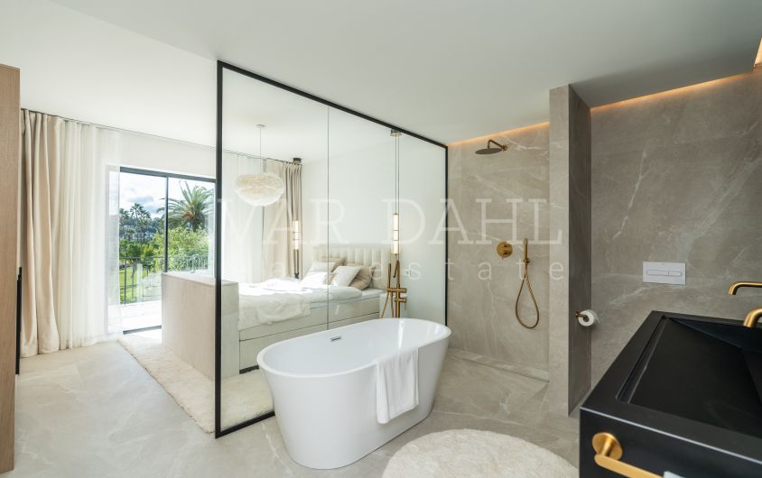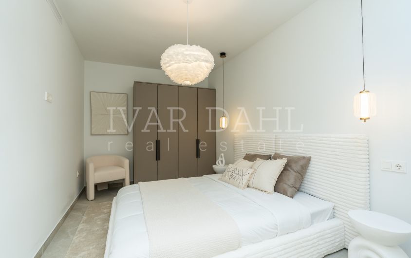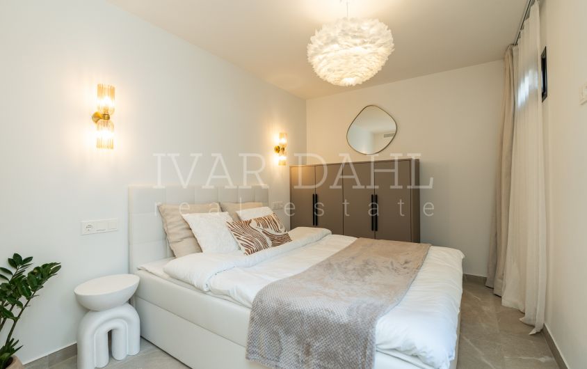 Distributed over two floors, Casa Preciosa has been totally refurbished and decorated to a high standard and with quality design. Accommodation comprises, on the garden level: lovely entrance patio, hallway, two guest bedrooms sharing a bathroom, guest toilet with enclosed utility room, open plan living area including the sleek designer fully fitted and equipped kitchen, leading on to the charming terrace enjoying pleasant garden and pool views and with direct access to the beautiful grounds. An elegant staircase leads to the first floor, comprising the master suite with a terrace overlooking the gardens and pool towards the Golf Valley and the mountains, plus a guest bedroom with en suite bathroom. Completed October 2025.
