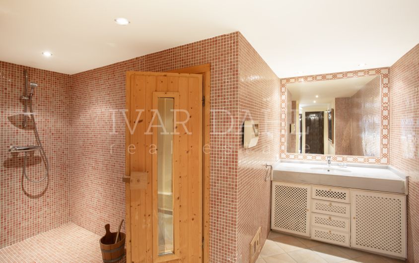 This luxurious villa is a rare gem on the Costa del Sol, epitomizing timeless elegance and crafted with the finest materials—an exceptional quality that’s increasingly hard to find in today’s market. Nestled among the lush landscapes of Nueva Andalucía’s premier golf courses, the villa boasts a coveted southwest orientation, flooding the home with natural light while offering tranquility in an exclusive residential enclave. Its prime location provides effortless access to Aloha’s renowned dining, vibrant nightlife, iconic Puerto Banús, and stunning beaches, seamlessly blending convenience with unmatched luxury.