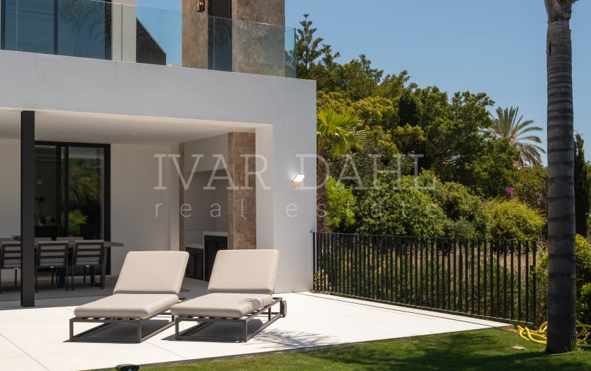 Nestled in a private cul-de-sac right by the renowned Los Naranjos Golf Club, this contemporary villa offers a perfect blend of modern comfort and prime location. Just an 8-minute drive (or a scenic 40-minute walk) to the beach, it’s ideal for those seeking peace without losing access to Marbella’s vibrant lifestyle.