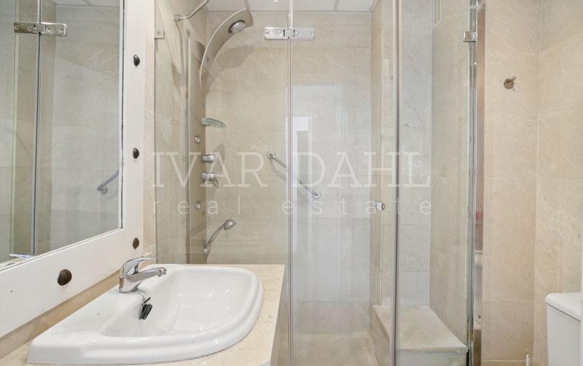 Residents enjoy access to excellent communal facilities, including a large swimming pool, well-maintained gardens, a gym, and a solarium. The penthouse’s terraces are ideally designed for relaxation and entertaining, featuring a Jacuzzi, barbecue area, and both covered and uncovered spaces to enjoy Marbella’s climate. Solar panels contribute to the property’s efficiency, and amenities such as air conditioning and a ceiling heating system ensure year-round comfort.