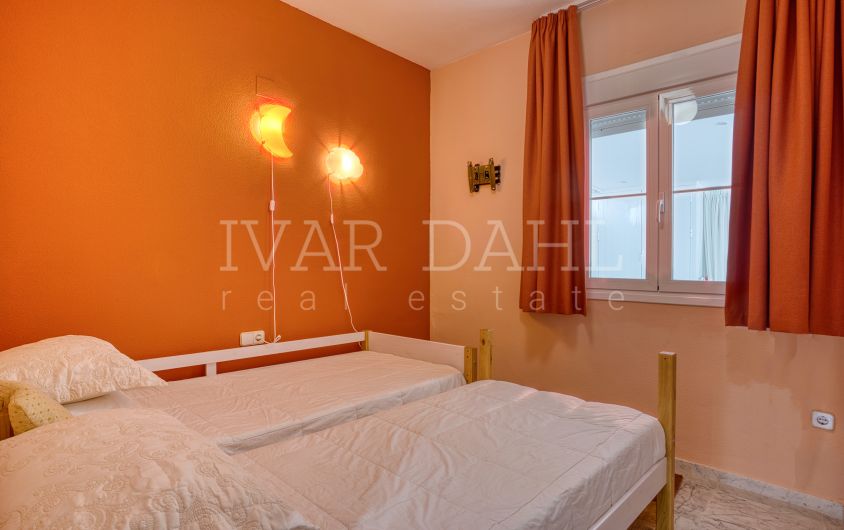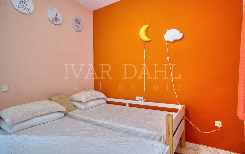 The terrace offers pleasant views over the gardens and the communal pool, providing an ideal setting for outdoor relaxation. The uncovered terrace area is perfect for enjoying the mild Costa del Sol climate, and pets are welcome in the community. The property is also close to various amenities, including shops, schools, children’s playgrounds, and transport links, making it well-suited for both families and professionals. Beach lovers will appreciate the proximity to the sea, while golf enthusiasts will find renowned courses nearby.