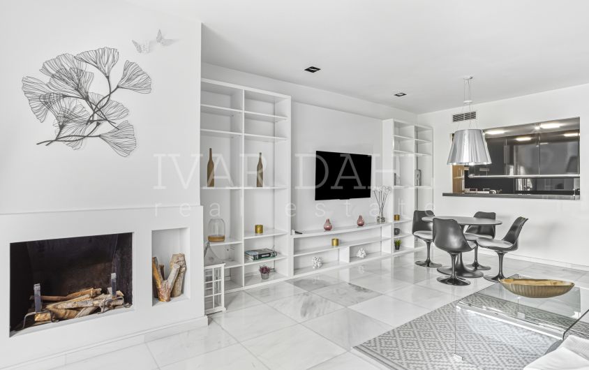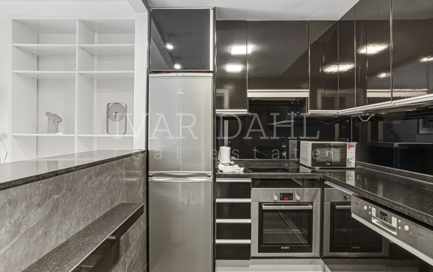Beautiful beachfront penthouse with sea and La Concha mountain views, located in a gated community in the heart of Puerto Banús. Just a few steps from the beach, restaurants, shops, and all amenities. This bright and welcoming property offers an unbeatable location and the perfect combination of comfort and lifestyle. The penthouse features one bedroom and one fully equipped bathroom, as well as a modern kitchen and a spacious living-dining area with a fireplace, filled with natural light. The interior has been designed for both functionality and comfort, and includes centralized air conditioning, shutters, and a pleasant, airy atmosphere. The gated community provides a secure and peaceful environment, ideal for both permanent residence and holiday stays. Additionally, the property offers the possibility of short-term rentals, making it an attractive investment opportunity. An exceptional opportunity to acquire a penthouse in one of Marbella’s most exclusive areas, combining stunning sea and mountain views with a truly privileged location.