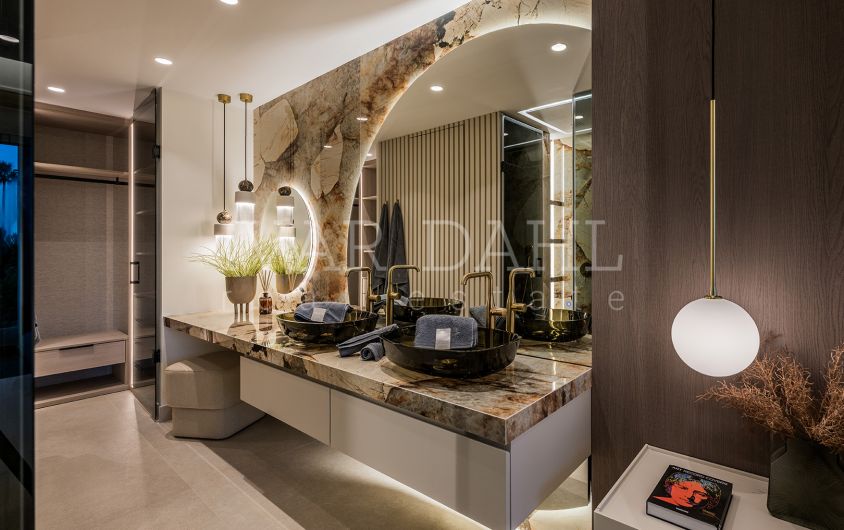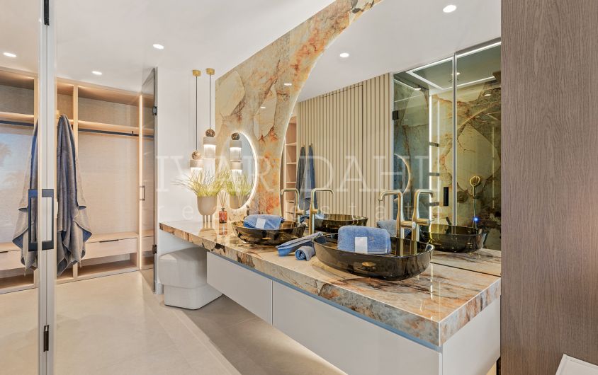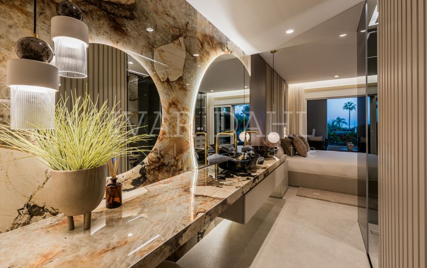This exceptional ground floor apartment is located in the sought-after Bahía del Velerín community, situated on the eastern side of Estepona, Malaga. Boasting a prime front line beach position, this luxurious residence offers direct access to both the pristine communal gardens and swimming pool, as well as to the Mediterranean sea. The property provides a rare combination of tranquillity, modern elegance, and immediate proximity to the coastline, making it an ideal choice for those seeking an exclusive beachfront lifestyle.