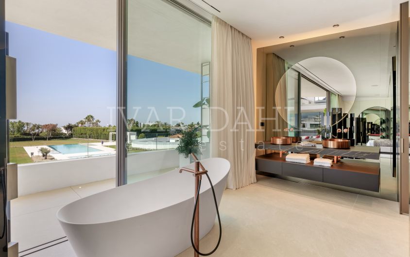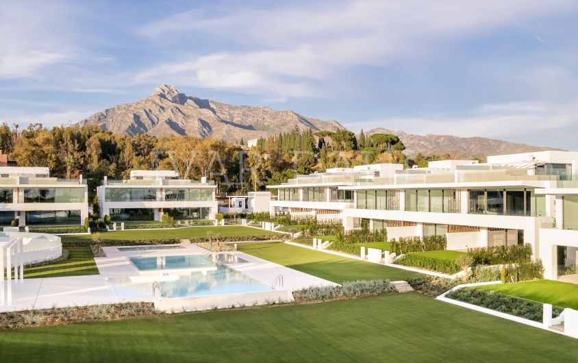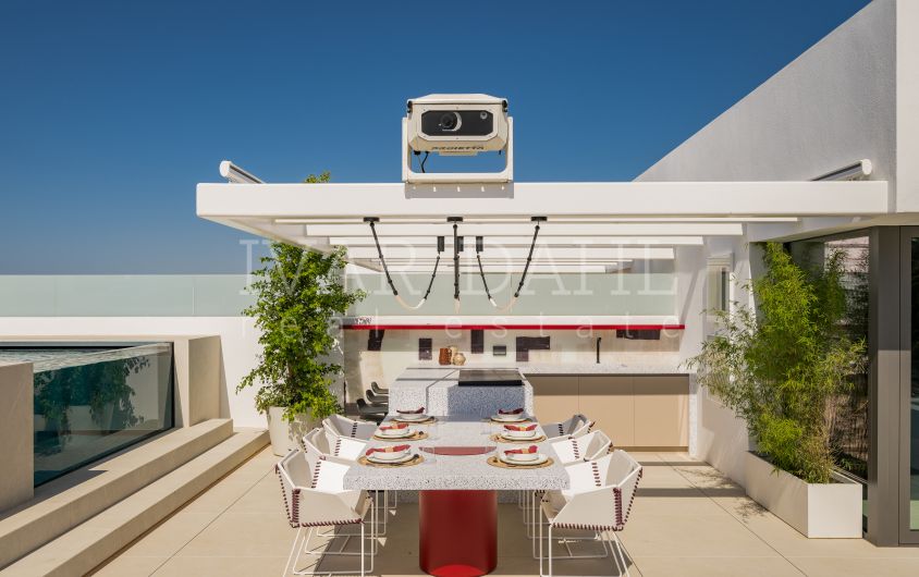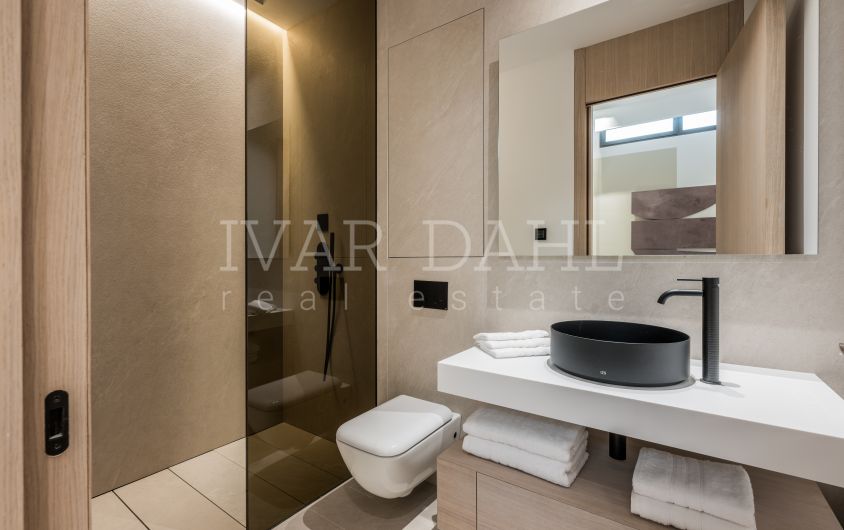 Con vistas sublimes al mar hacia el sur, el telón de fondo de las villas no es otro que el palacio del rey Fahd, residencia de verano de la familia real saudí. El desarrollo Vilas12 está completamente cerrado, con jardines bellamente ajardinados y una piscina infinita. A solo 2 minutos a pie se encuentra el renombrado Hotel & Resort Puente Romano de 5 estrellas, el centro de la escena social exclusiva de Marbella que ofrece una gran cantidad de restaurantes de alta cocina, spa, club de tenis y vida nocturna, a poca distancia en coche de Puerto Banús.