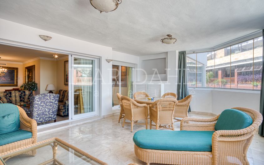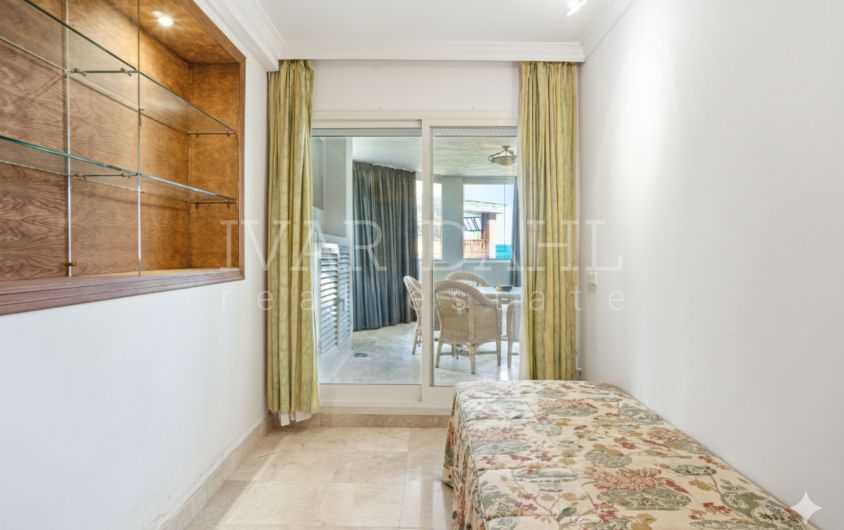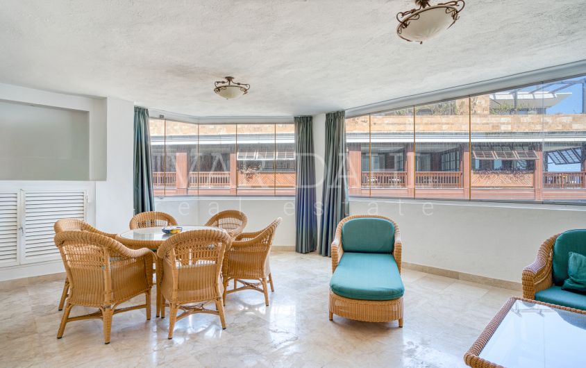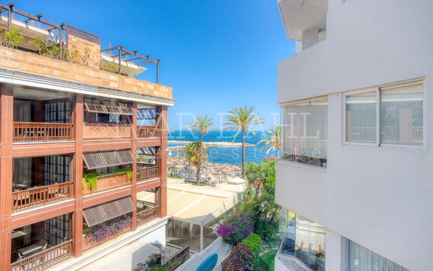 Precioso apartamento frente a la playa con vistas al mar y a la montaña La Concha, situado en una comunidad cerrada en el corazón de Puerto Banús. A pocos pasos de la playa, restaurantes, tiendas y todas ...