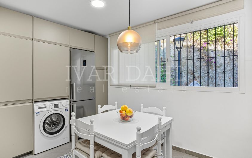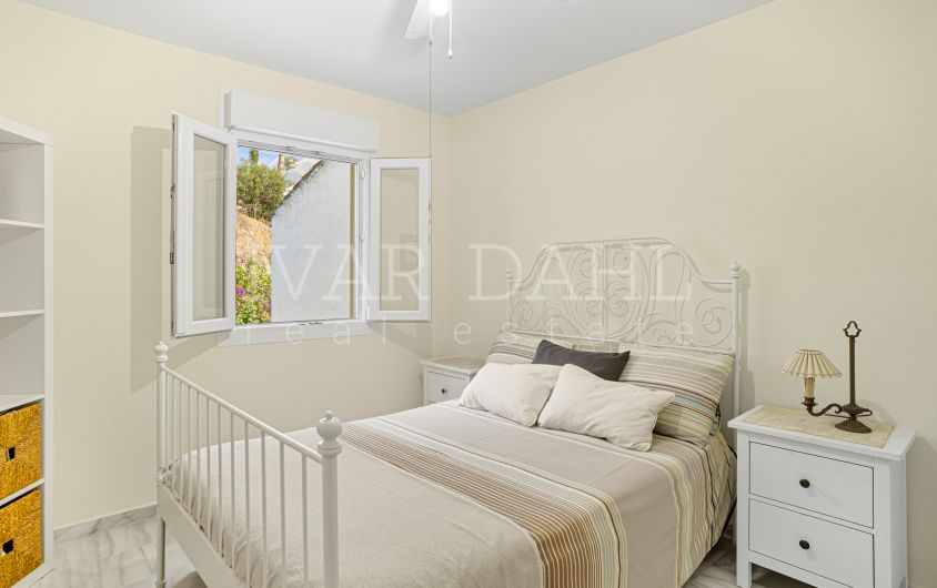 Estupenda propiedad en la demandada zona de El Capricho (Nagüeles Bajo), cerca de la playa, el centro de Marbella, servicios, transporte, colegios, farmacias y supermercados. La vivienda forma parte de una ...