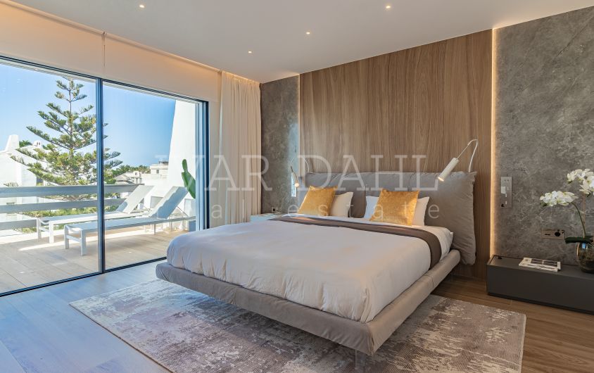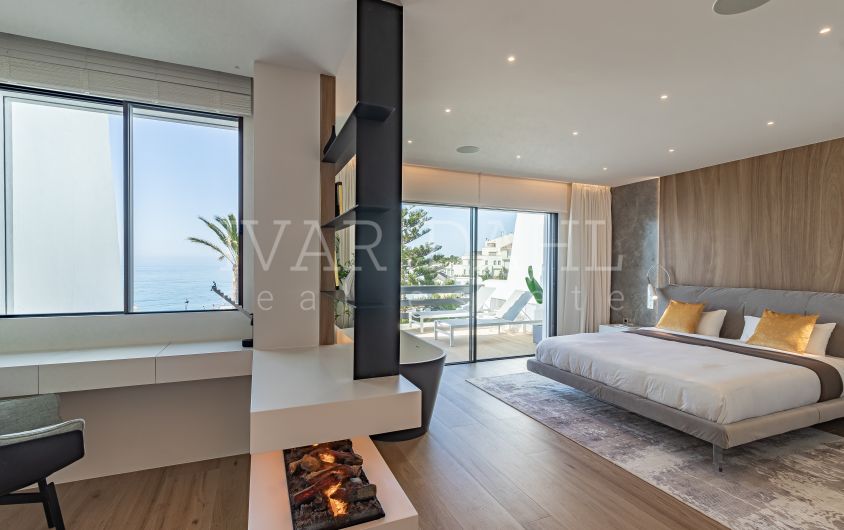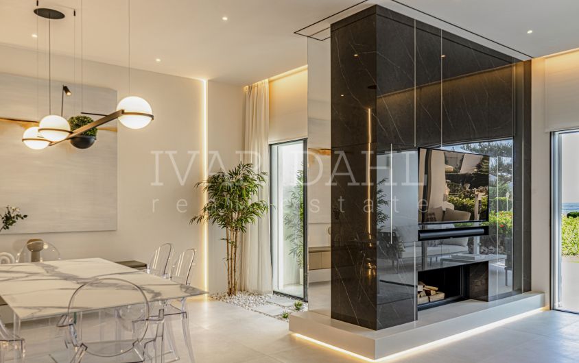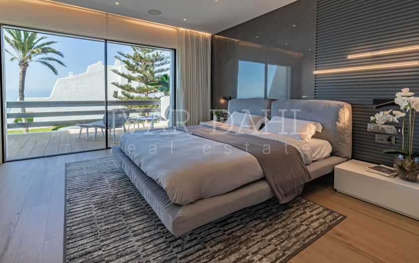 Adosada en primera línea de playa con vistas al mar, Milla de Oro de Marbella