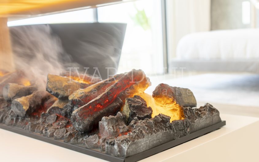 Al entrar, le recibe un vestíbulo que conduce a una cocina de última generación. Este espacio cuenta con una isla central y está totalmente equipado con electrodomésticos de la más alta calidad. El amplio salón-comedor está inundado de luz natural y ofrece un ambiente confortable para relajarse o socializar, realzado por la calidez de una acogedora chimenea.