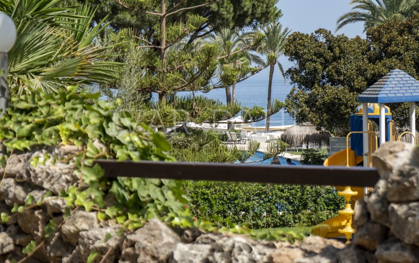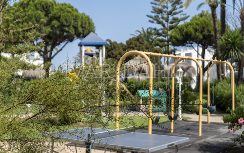Bienvenido a una propiedad excepcional en Coral Beach, un prestigioso complejo frente al mar en la célebre Milla de Oro de Marbella. Esta comunidad está cerrada para mayor privacidad y seguridad, y ofrece jardines comunitarios bellamente cuidados, una refrescante piscina y un acceso directo inigualable a la playa y al paseo marítimo. Los prestigiosos hoteles de cinco estrellas Puente Romano y Marbella Club se encuentran a un agradable paseo.