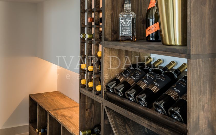 La cocina está equipada con elegantes encimeras de mármol italiano e incluye un exclusivo mueble bar para vinos a medida. En esta misma planta se encuentra un dormitorio de invitados con baño en suite y terraza privada, garantizando comodidad y privacidad.