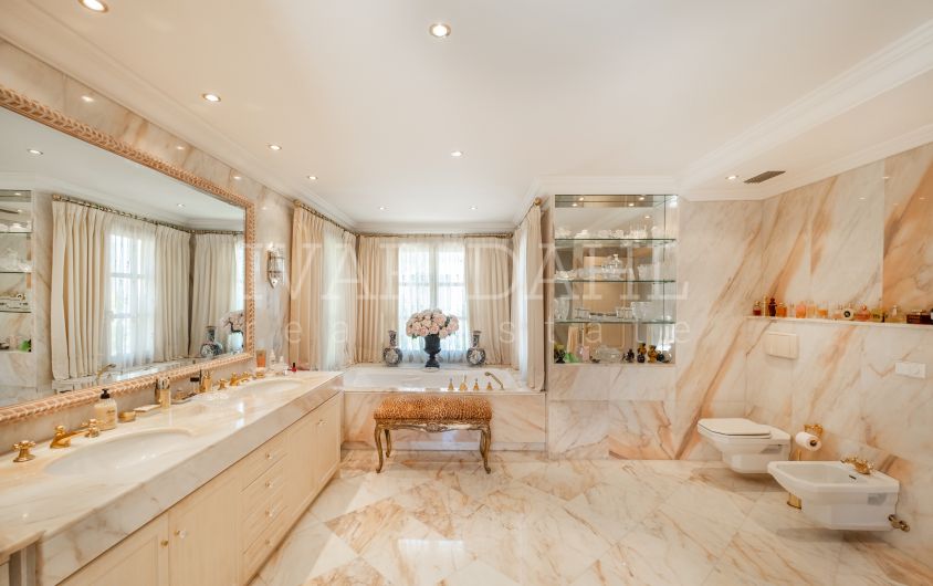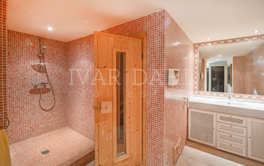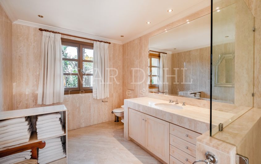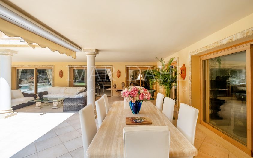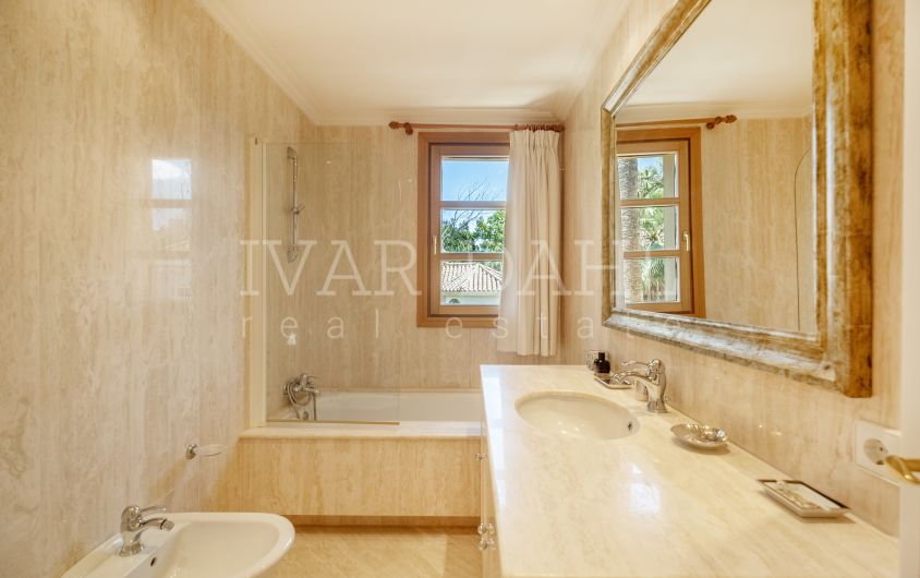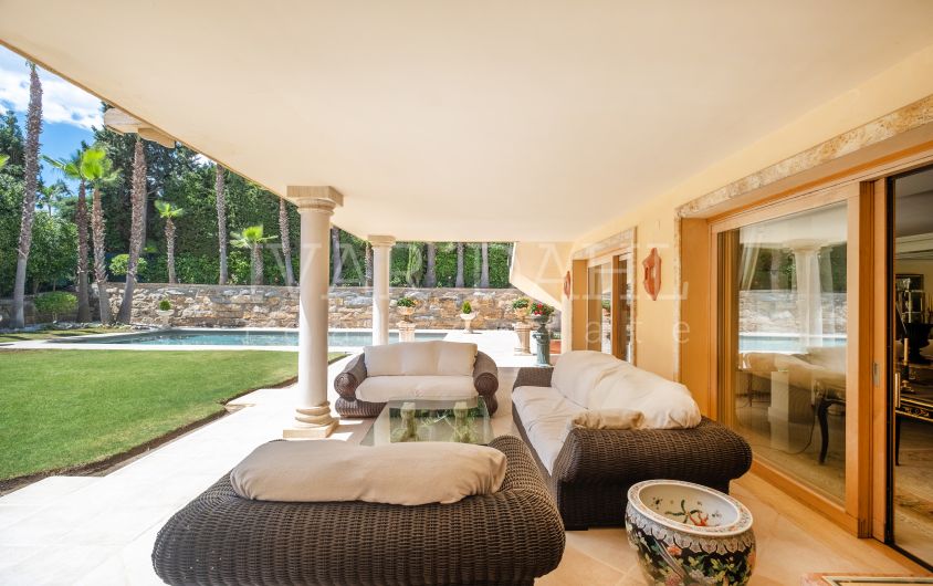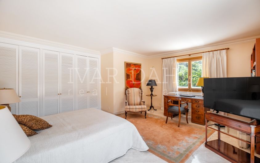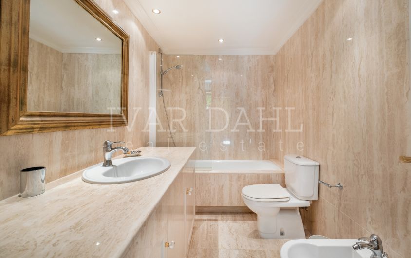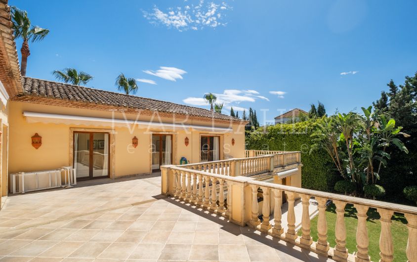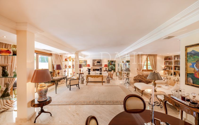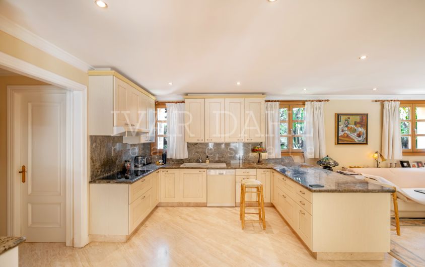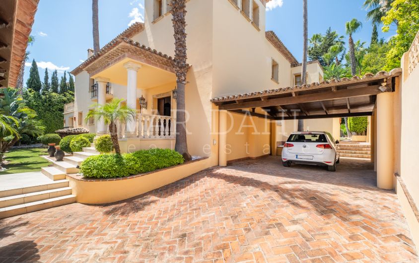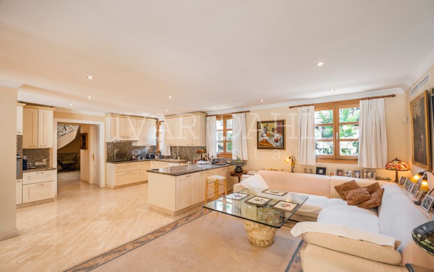 Beläget i hjärtat av Nueva Andalucía, erbjuder denna rymliga villa en exceptionell möjlighet i en av Marbellas mest eftertraktade bostadsområden. Omgiven av topp golfbanor och bara några minuter från Puerto Banús, är detta hem idealiskt för dem som söker integritet, komfort och bekvämlighet.